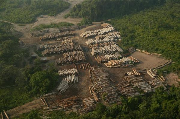 | Ilustrasi praktek illegal logging. Foto : Greenpeace. |