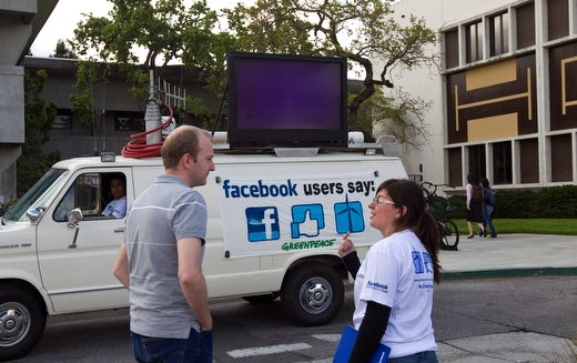 Inilah aksi kreatif aktivis lingkungan hidup Greenpeace yang kali menggunakan balon udara yang berputar di dekat kantor Facebook di Palo Alto, California (14/4). Greenpeace menyerukan raksasa jaringan sosial ini untuk menggunakan energi terbarukan. Foto : Greenpeace/Kim Putih