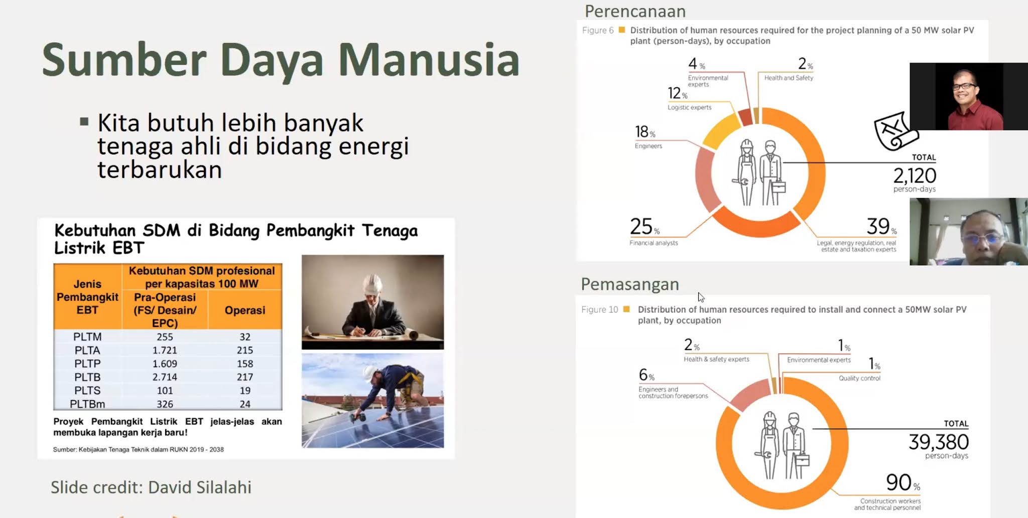 Dari sisi pekerjaan, PLTS tidak hanya didominasi oleh insinyur teknik. “Engineer hanya 18% dari total SDM yang dibutuhkan. Sisanya adalah bidang legal, finance, health, environment expert,” terang Edward.