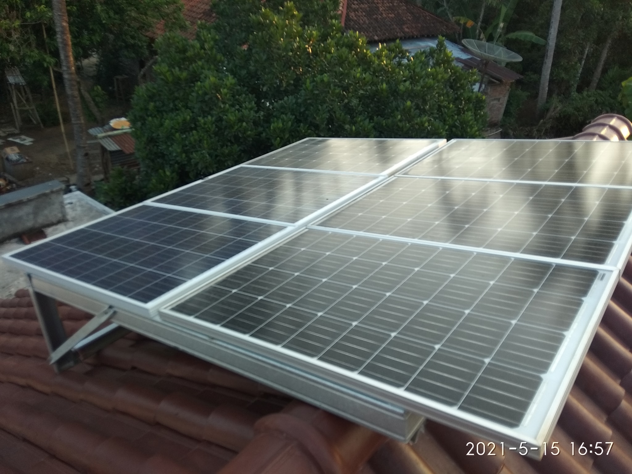 “Saya sengaja naik untuk nengokin, karena panelnya udah lama gak dibersihin. Ini di genteng ada 100 WP x 4, totalnya 400 WP,” katanya.
