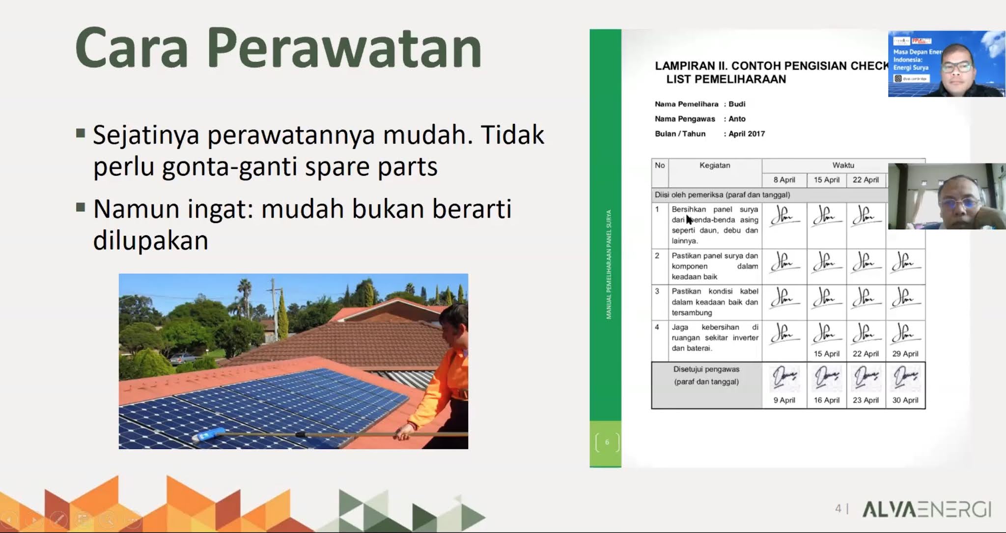 | Cara merawat pembangkit listrik tenaga surya atap. (sumber: Edward E. Kosasih) |