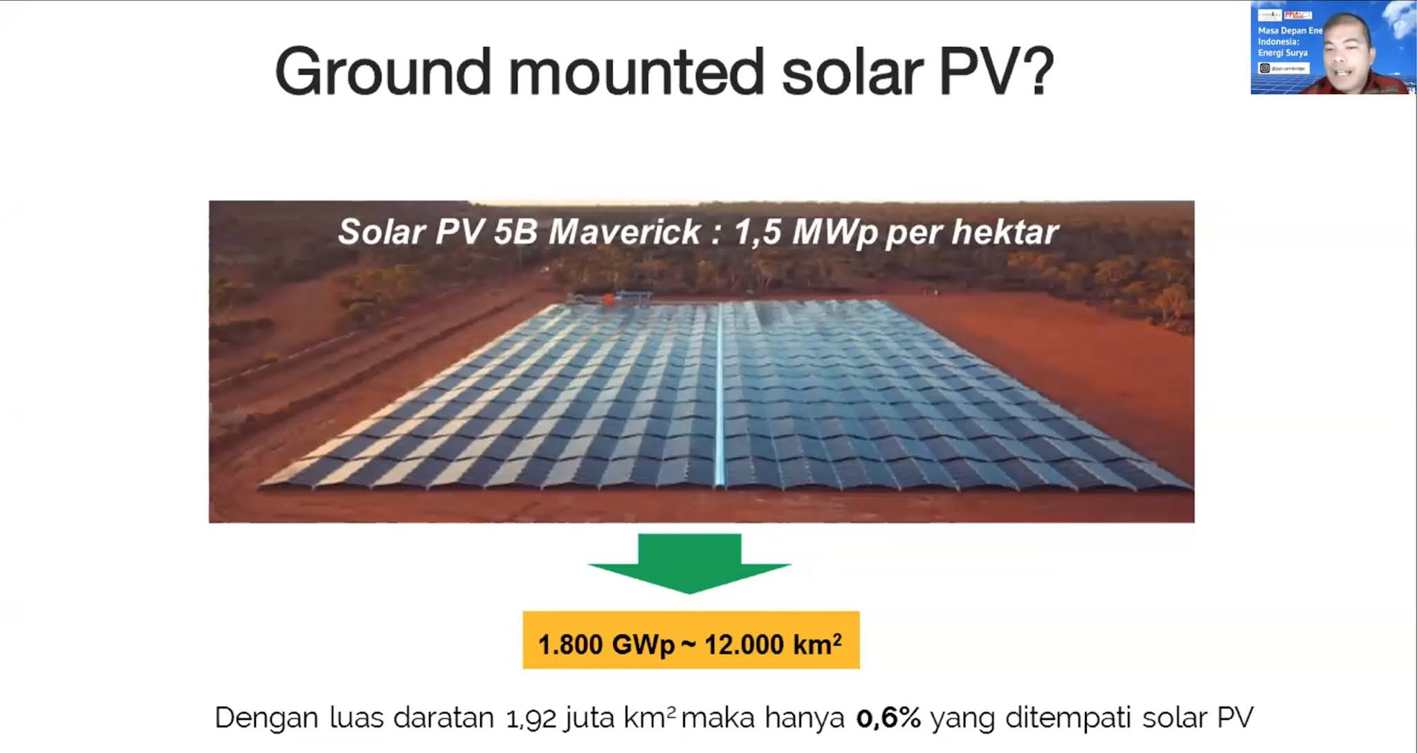 | Kapasitas potensi solar PV di Indonesia 536 GW. (sumber: Felix Utama Kosasih) |