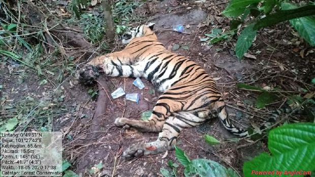 Saat ditemukan, harimau terjerat tali sling di kaki sebelah kanan bagian depan. Kondisinya sudah membusuk dan hampir putus. Dari hasil pemeriksaan, diperkirakan satwa langka di lindungi itu telah mati dua hari sebelumnya. Penyebabnya, karena kaki terjerat sling.
