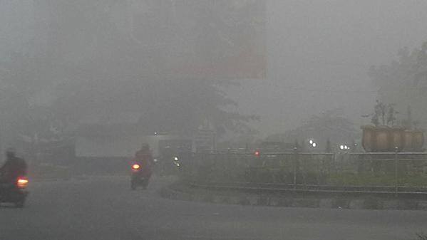 | Inilah kondisi kota Pekanbaru pada tanggal 6 Oktober 2015 akibat kabut asap. Foto : dok Rudy Kuswarno |