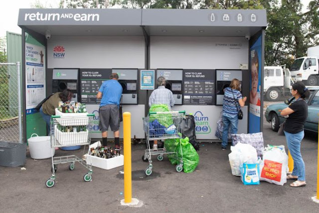 Dalam setiap botol minuman Australia, terdapat tulisan yang menyebutkan botol bisa dikembalikan ke tempat daur ulang dan setiap kaleng yang dihargai sekitar Rp 1.000.