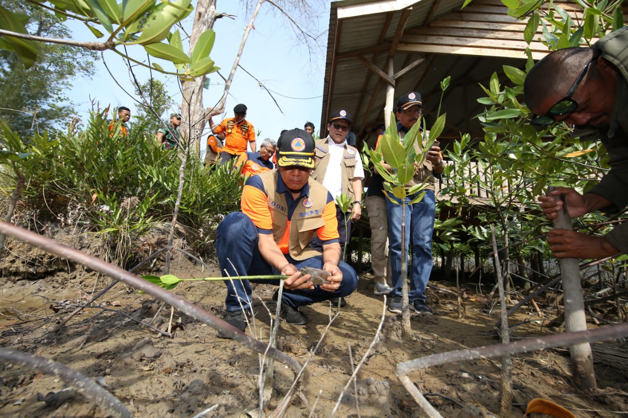 Kehadiran sang jenderal yang pernah sukses mempelopori program ‘Citarum Harum’ di ‘Hutan Amazon’nya Bangka itu juga diisi dengan kegiatan penanaman bibit pohon mangrove. Usai menanam, Kepala BNPB kemudian berkeliling di kawasan konservasi yang juga disulap menjadi tempat wisata alami.