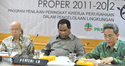 JAKARTA, BL- Kementerian Lingkungan Hidup (KLH) mengumumkan kinerja perusahaan yang dinilai dalam Program Peringkat Kinerja Perusahaan (PROPER) periode 2011-2012 di Ruang Kalpataru, KLH kemarin.