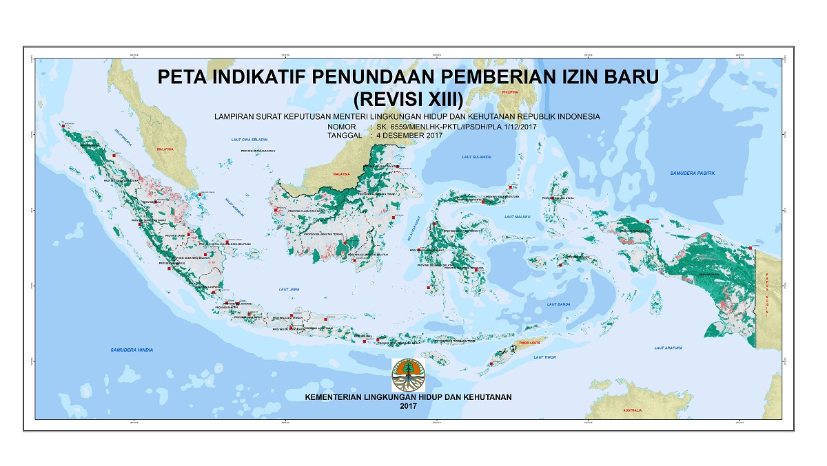 Dijelaskan, hal tersebut diperkuat dengan penerbitan Instruksi Presiden RI No. 6 Tahun 2017 tanggal 17 Juli 2017 tentang Penundaan dan Penyempurnaan Tata Kelola Pemberian Izin Baru Hutan Alam Primer dan Lahan Gambut. Sebagai kelanjutan dari Instruksi Presiden tersebut, pemerintah telah menerbitkan Surat Keputusan Menteri LHK No. SK. 6559/MENLHK-PKTL/IPSDH/PLA.1/12/2017 tanggal 4 Desember 2017, tentang “Penetapan Peta Indikatif Penundaan Pemberian Izin Baru Pemanfaatan Hutan, Penggunaan Kawasan Hutan dan Perubahan Peruntukan Kawasan Hutan dan Areal Penggunaan Lain (Revisi XIII)”.