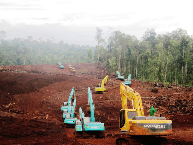 Alat berat milik PT PBI saat melakukan ekspansi ke tanah milik masyarakat adat sambawa |