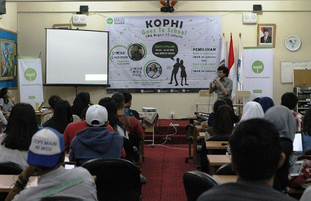 JAKARTA, BERITALINGKUNGAN.COM- Momen peringatan Hari Pendidikan Nasional, dimanfaatkan sejumlah pemuda yang tergabung dalam Koalisi Pemuda Hijau Indonesia (KOPHI) melakukan edukasi lingkungan melalui acara “KOPHI Goes To School” dengan melibatkan seluruh pelajar SMAN 53 Jakarta pada Sabtu 14 Mei 2016.