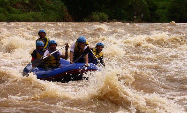 Arung jeram… ehm, itulah kegiatan yang akan kami geluti nanti. Kegiatan olahraga air yang siap menyedot adrenalin para penikmatnya. Rasanya sudah cukup lama saya tak melakukannya, sejak pengarungan di Sungai Pekalen – Jawa Timur 1,5 tahun silam.