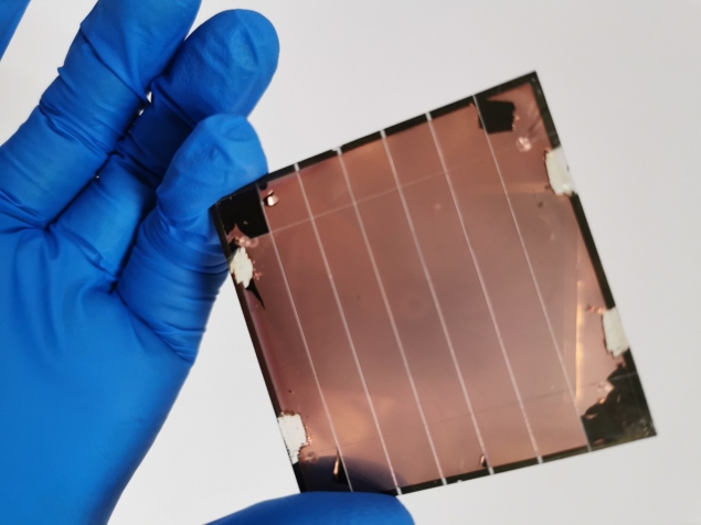 | Sebentuk Perovskit monolitik yang merupakan sel surya tandem (sumber: https://physicsworld.com/) |