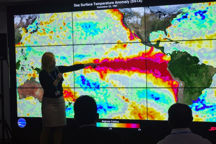 Perwakilan NASA (Jack Kaye, Michelle Gierach, Piers Sellers, dan Daniel Irwin) saat menghadiri Sidang ke-20 Konferensi Perubahan Iklim (COP 20) di Lima, Peru. Foto : Nasa. |