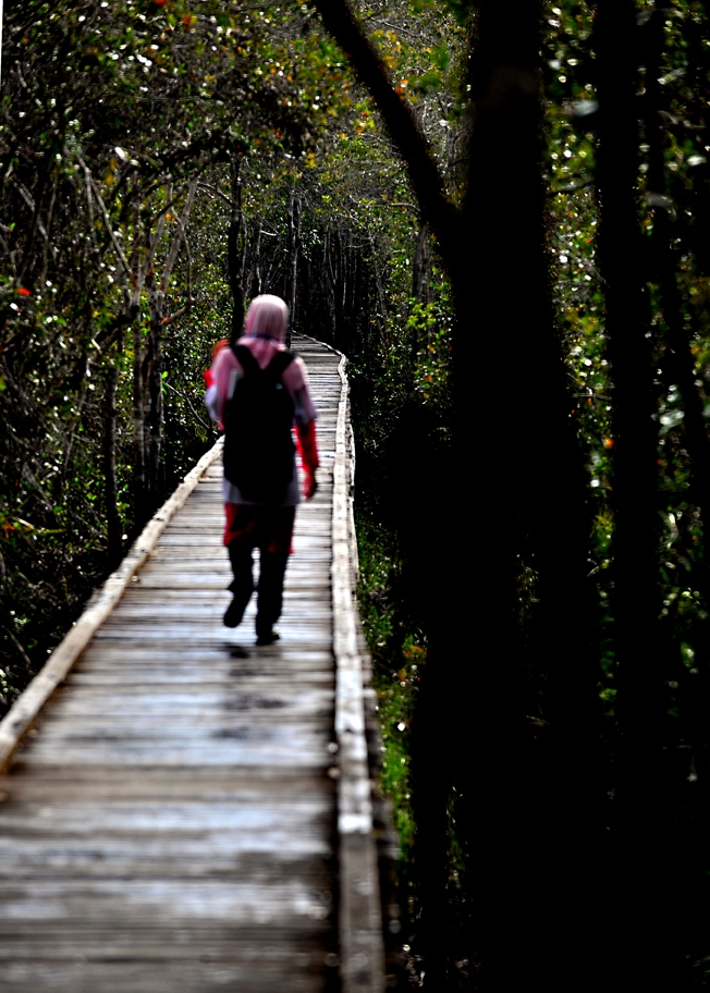 Akhirnya sekitar pukul 16.00 WIB, impian menghirup udara taman surga yang sesungguhnya menjadi kenyataan, saat perahu klotok yang membawa kami sandar di dermaga kayu di Camp Leakey. Kami pun mulai berjalan di atas jembatan kayu ulin sepanjang sekitar 250 meter dan lebar satu meter menuju pusat Camp Leakey.