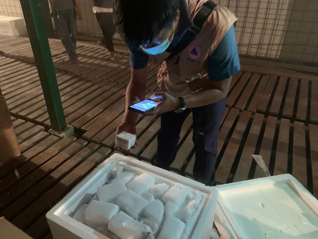 Setibanya di gudang berpendingin, BNPB dan Balitbang Kementerian Kesehatan mendistribusikan peralatan uji sampel tersebut kepada BPBD DKI Jakarta, Provinsi Jawa Barat, Jawa Tengah dan Jawa Timur. Seperangkat peralatan yang digunakan untuk menguji sampel tersebut berupa kit Viral RNA Isolation, kit _Multiplex Real-time PCR dan viral transport medium.