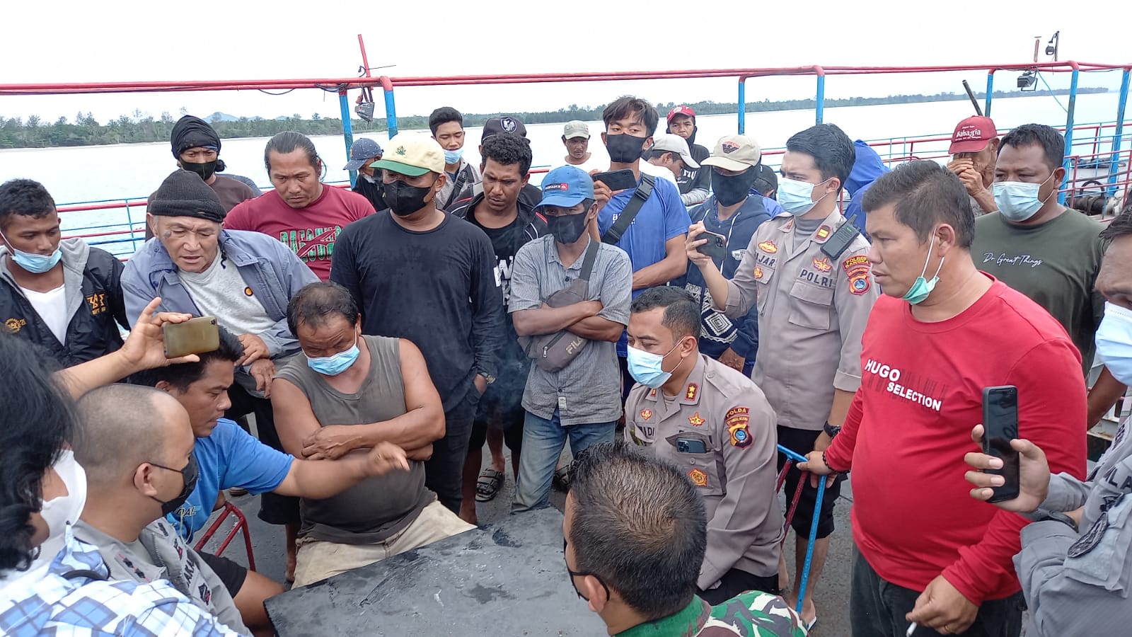 Pada pukul 11.38 WIB, Kapolres Bangka, Dandim 0413 Bangka, Bakamla Bangka, melakukan pertemuan dengan nelayan. Tawaran agar mereka keluar dari kapal isap produksi ditolak nelayan.