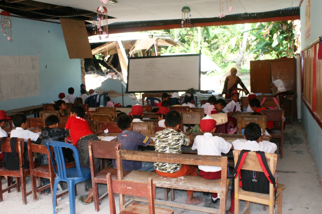 PADANG PARIAMAN, BL- Gempa bumi yang telah meluluhlantakkan sekolah-sekolah, ternyata tidak menurunkan semangat para guru dan siswa untuk terus melanjutkan kegiatan belajar dan mengajar. Guru-guru dan siswa SDN 27 Ambung Kapur, Sungai Sarik, Kecamatan VII Koto, Kabupaten Padang Pariaman tetap bersemangat untuk belajar.